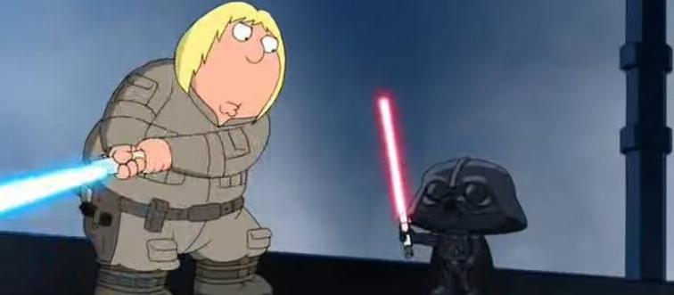 In the "Blue Harvest" episode, Cleveland takes on the role of R2-D2. Other characters include Lois as Princess Leia, Quagmire as C-3PO, Peter as Han Solo, and Chris as Luke Skywalker.